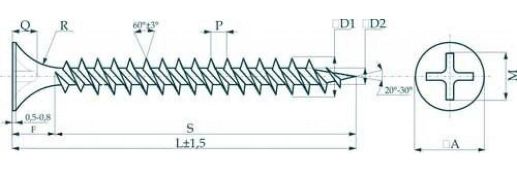 Диаметр крестообразного шлица |