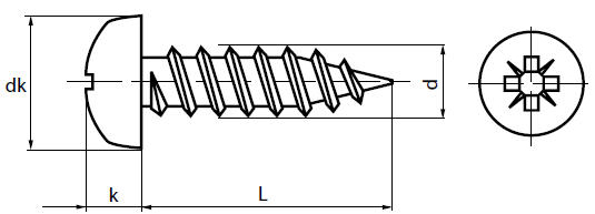 | d - диаметр самореза, мм | L - длина самореза, мм | dk - диаметр головки, мм | k - высота головки, мм |