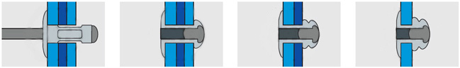Основное применение заклепки вытяжной – неразъемное соединение тонких стальных листов и прочих листовых материалов. Также заклепка вытяжная используется для монтажа фасадных пластин, гофролистов и т.п. к различным конструкциям.