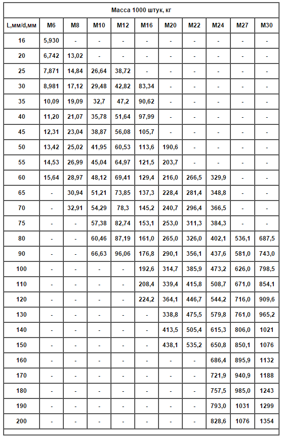 Масса 1000 шт., кг | Кол-во шт. в кг |