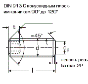 DIN 913 Винт установочный с плоским концом и внутренним шестигранником. Конец установочного винта имеет специальную форму, служащую для фиксации изделий относительно друг друга.
