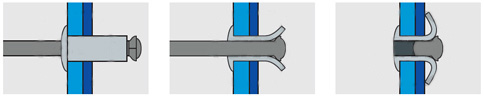 Основное применение заклепки вытяжной – неразъемное соединение тонких стальных листов и прочих листовых материалов. Также заклепка вытяжная используется для монтажа фасадных пластин, гофролистов и т.п. к различным конструкциям.
